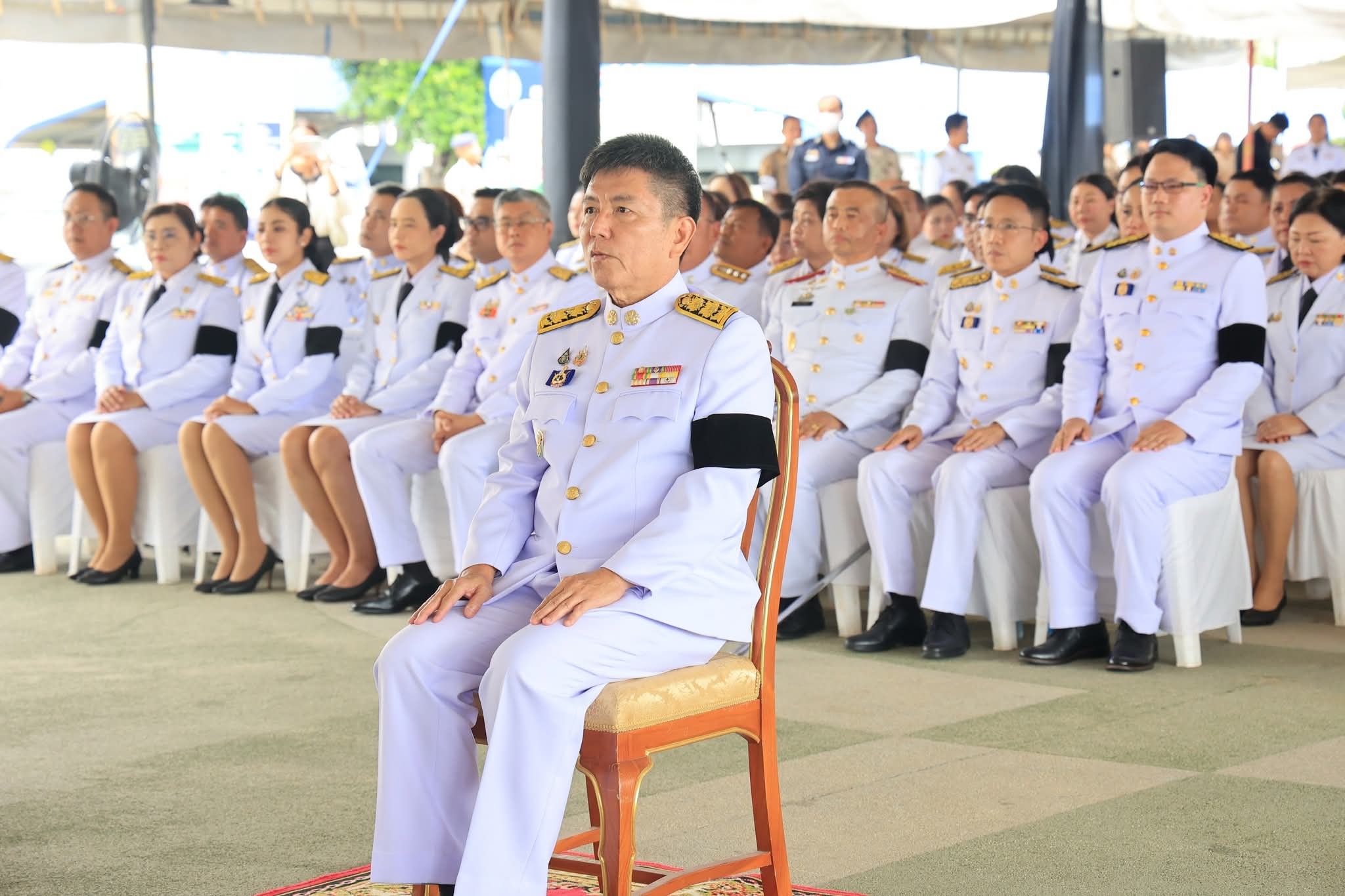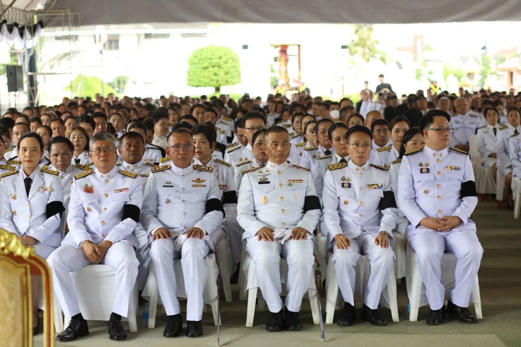หน.ส่วนราชการ ข้าราชการ ทหาร ตำรวจ พนักงานรัฐวิสาหกิจ สมาคมแม่บ้านมหาดไทยจังหวัดชุมพร องค์กรภาคเอกชน ประชาชน นักเรียน นักศึกษา จิตอาสา เข้าร่วมในพิธี