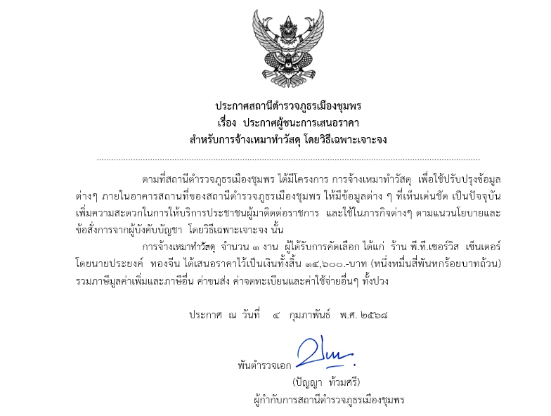 ประกาศการจัดซื้อจัดจ้างของสถานีตำรวจภูธรเมืองชุมพร