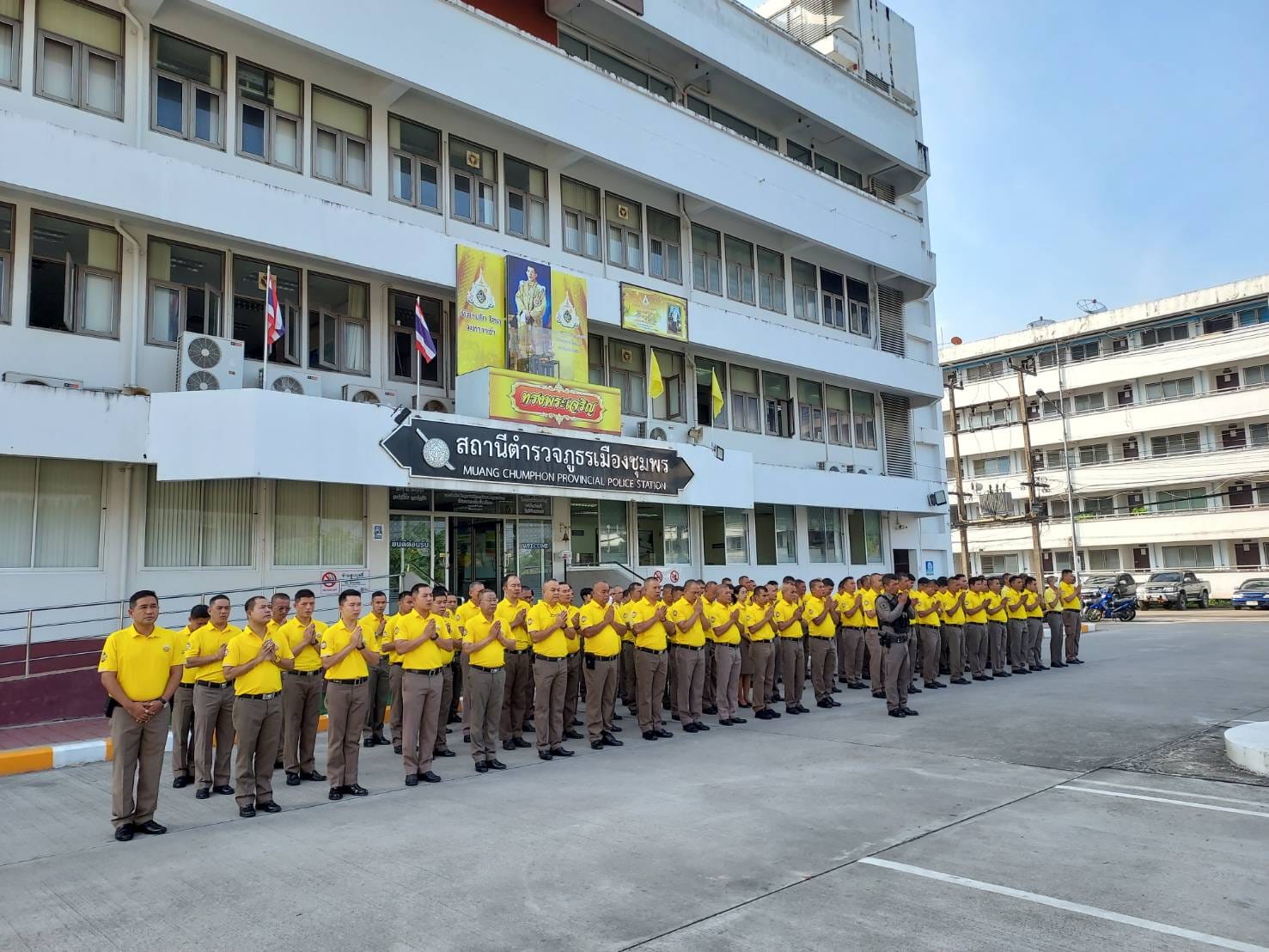 ร่วมเข้าแถวเคารพธงชาติ สวดมนต์ กล่าวบทปลงใจอุดมคติตำรวจ และรับฟังการชี้แจงข้อราชการจากผู้บังคับบัญชาจากนั้น หน.แผนกงานทุกแผนก ร่วมประชุมวิเคราะห์อาชญากรรมประจำสัปดาห์ ณ ห้องประชุม ศปก.สภ.ฯ และหลังจากนั้น ข้าราชการตำรวจในสังกัด ร่วมประชุมประจำเดือนสถานีตำรวจภูธรเมืองชุมพรครั้งที่ 4 /2567 ณ ห้องประชุมสภ.ชั้น 4